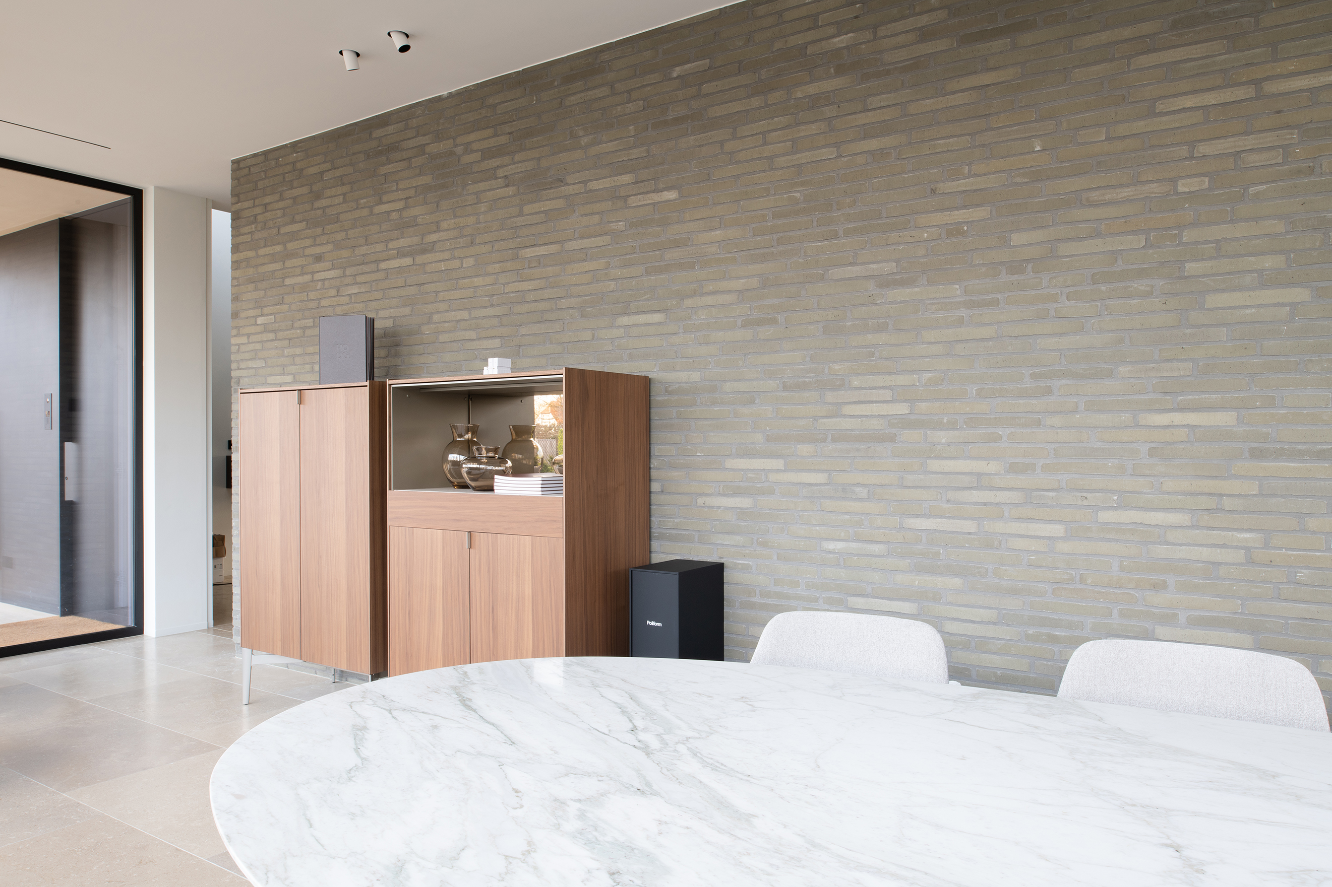 Cette brique gris-vert moulée à la presse, arbore notre label écologique ECO-7-size et fait partie de notre gamme Kaliber. En plus de sa grande élégance, cette variante moins profonde de notre gamme linea offre davantage de place pour l'isolation ou la surface habitable. Et comme toutes les briques de notre gamme linea, elle est idéale pour accentuer les lignes architecturales.