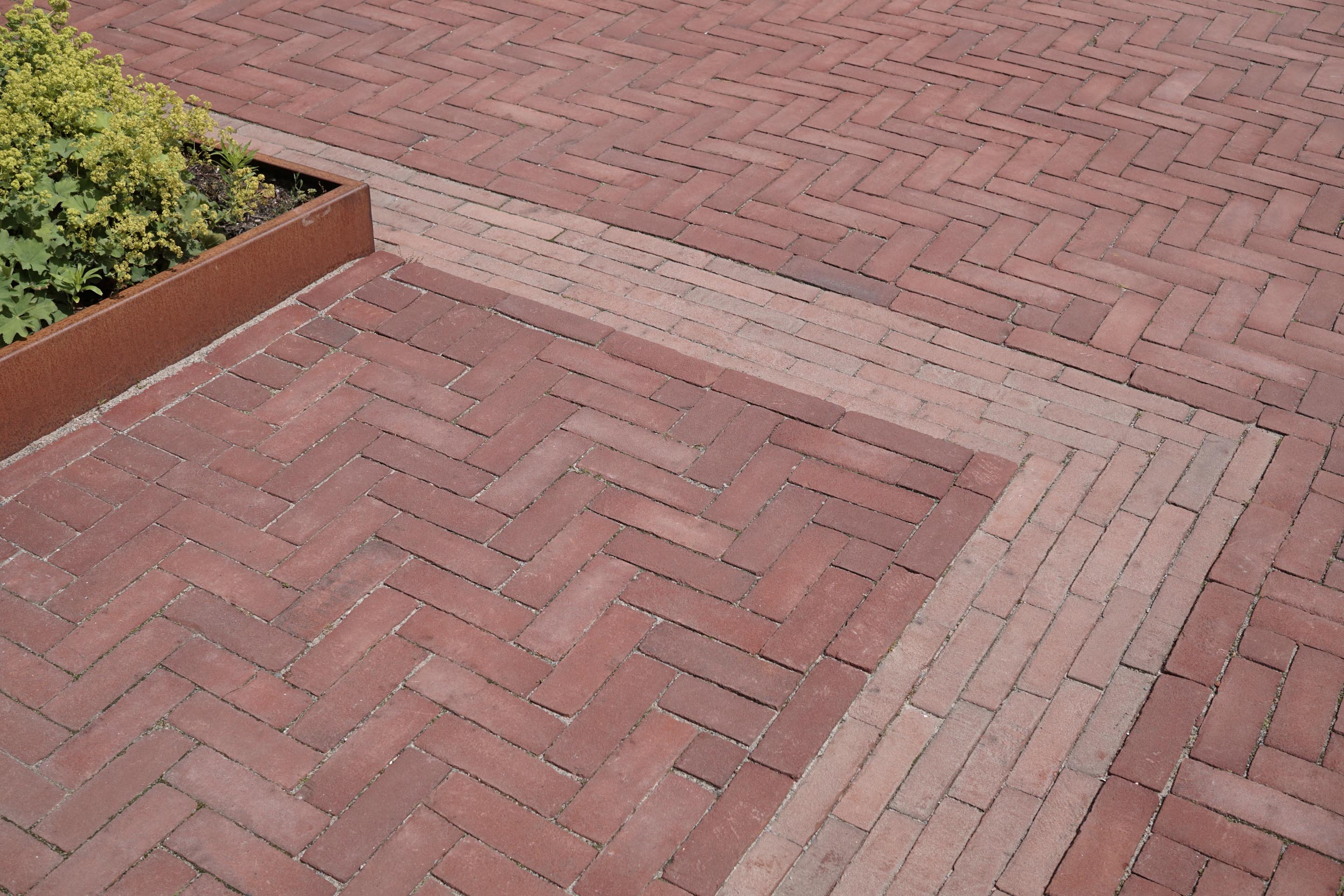 De par leur exceptionnelle dureté, les pavés en terre cuite peuvent également être nettoyés au jet d'eau sans risque de perte de couleur et de texture, si nécessaire en ajoutant des produits de nettoyage respectueux de l'environnement. Gardez une distance suffisante et évitez un jet ponctuel sur des pavés en terre cuite sablés. Les pavés en terre cuite sont résistants à la plupart des produits de nettoyage chimiques.