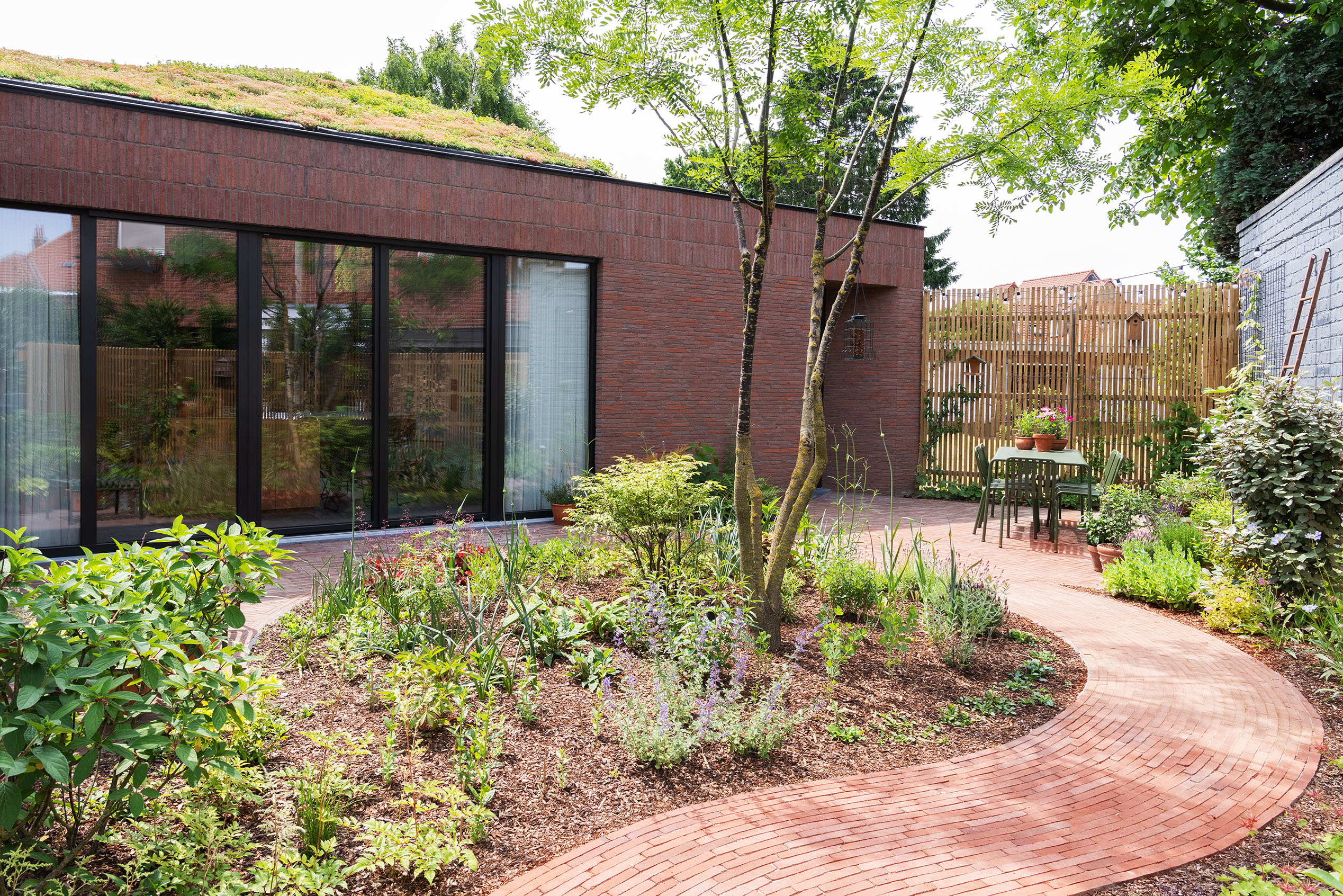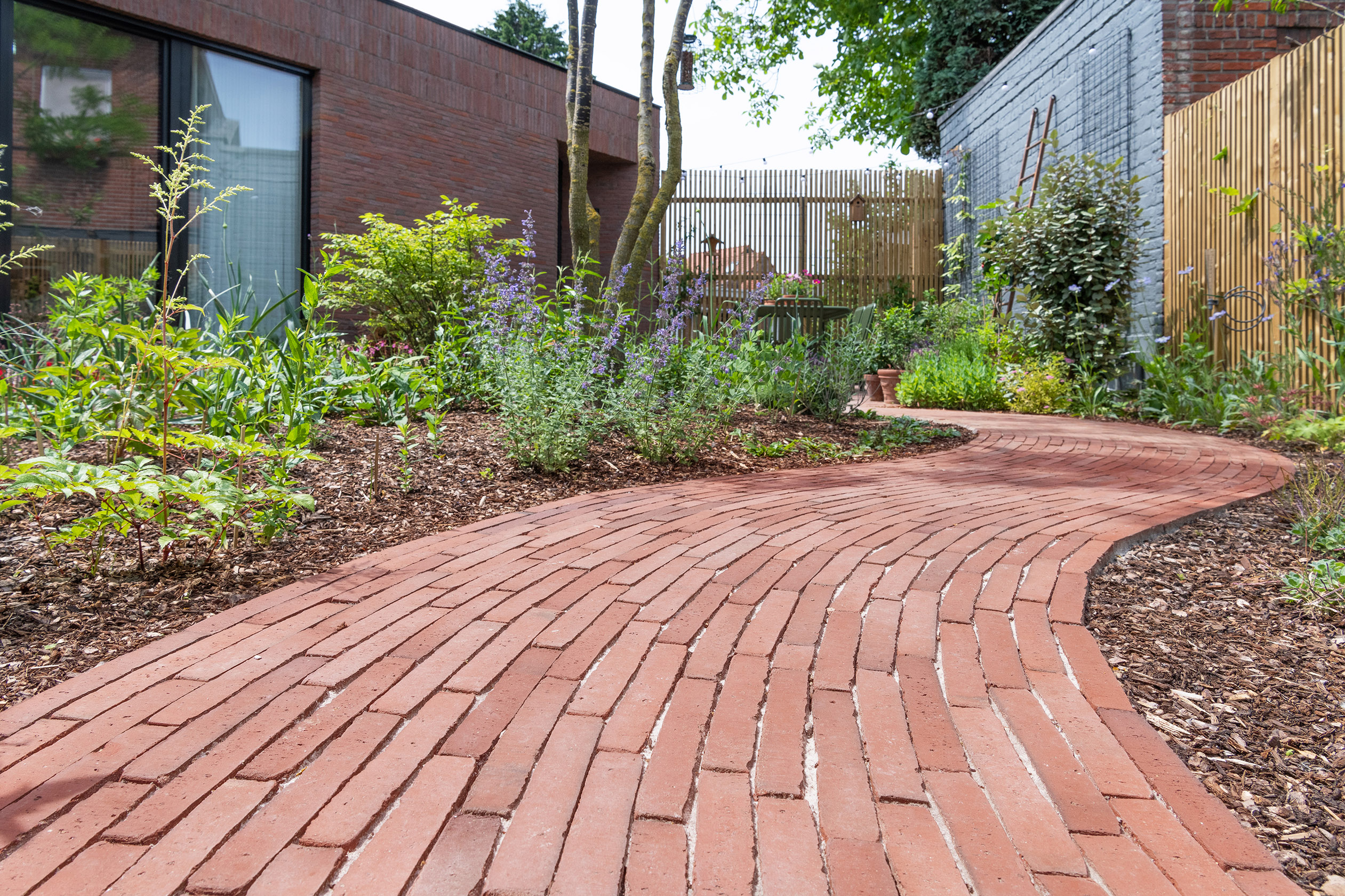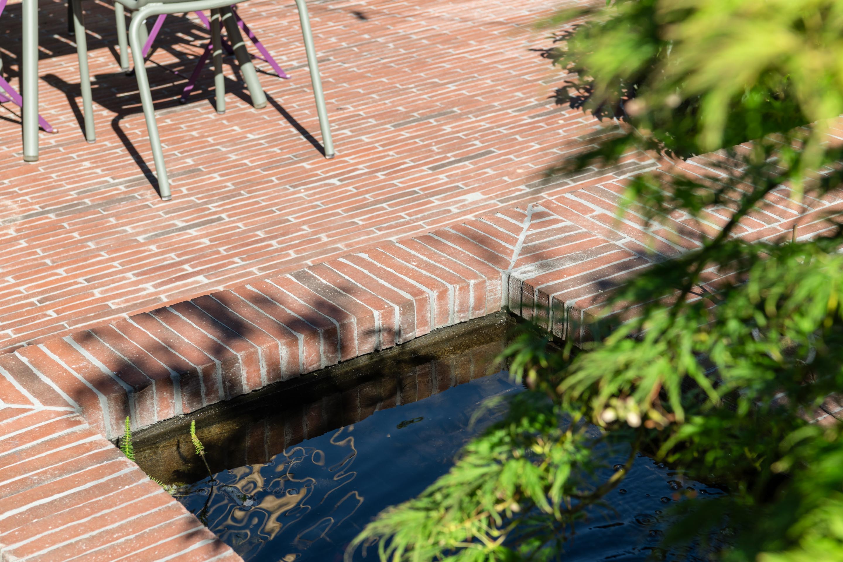 De par leur exceptionnelle dureté, les pavés en terre cuite peuvent également être nettoyés au jet d'eau sans risque de perte de couleur et de texture, si nécessaire en ajoutant des produits de nettoyage respectueux de l'environnement. Gardez une distance suffisante et évitez un jet ponctuel sur des pavés en terre cuite sablés. Les pavés en terre cuite sont résistants à la plupart des produits de nettoyage chimiques.