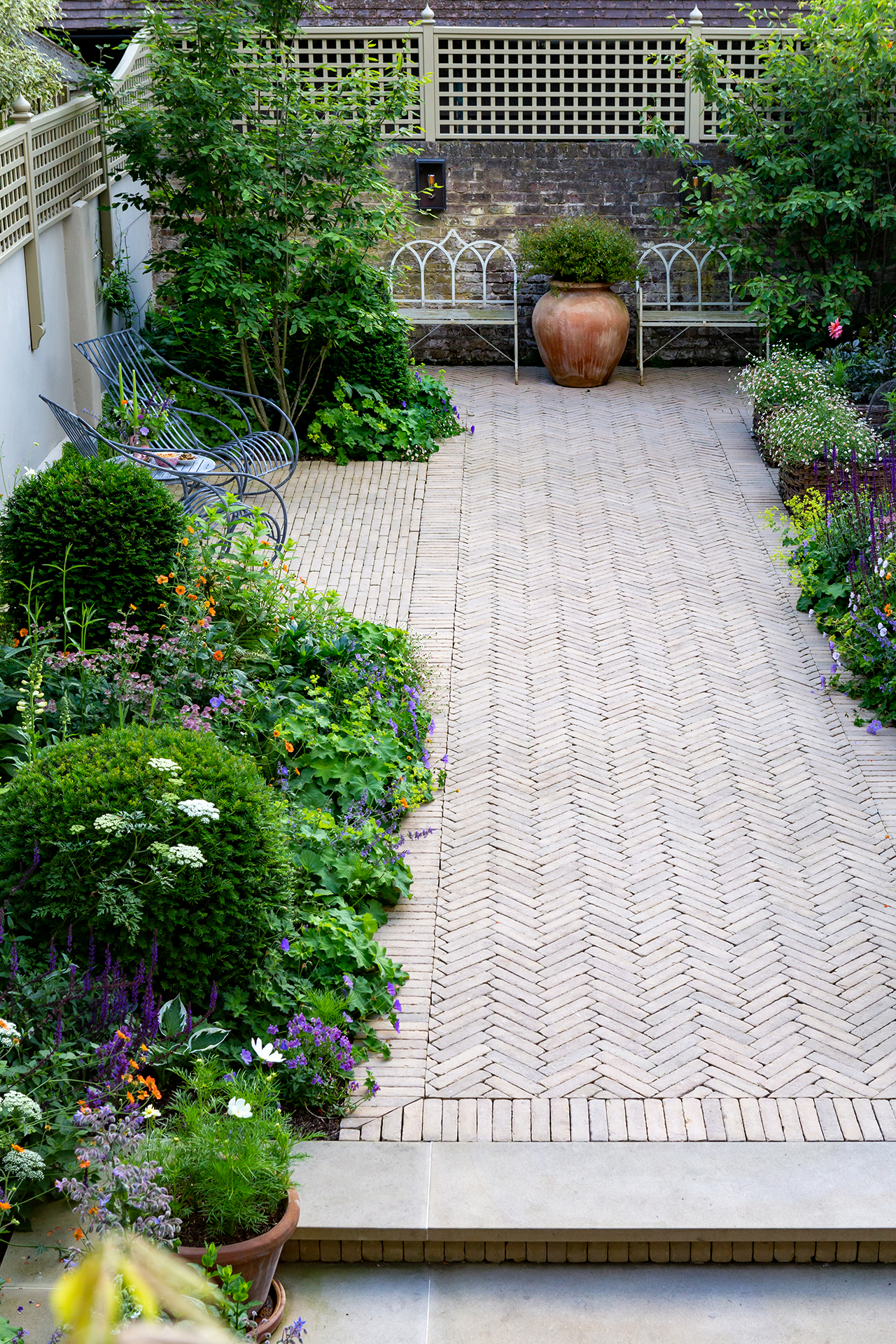 Ce jardin résidentiel magnifiquement conçu à Belsize Park, à Londres, concilie fonctionnalité, esthétique et durabilité écologique. Situé à près de deux mètres au-dessus du rez-de-chaussée inférieur et à plus d'un mètre au-dessous du rez-de-chaussée surélevé de la maison, le jardin représentait un défi unique en matière de conception. Le projet nécessitait l'intégration d'une pelouse pour les jeunes enfants des clients, d'un coin salon dans la partie la plus ensoleillée du jardin, d'un potager, d'un grand espace de rangement et d'une plantation luxuriante.