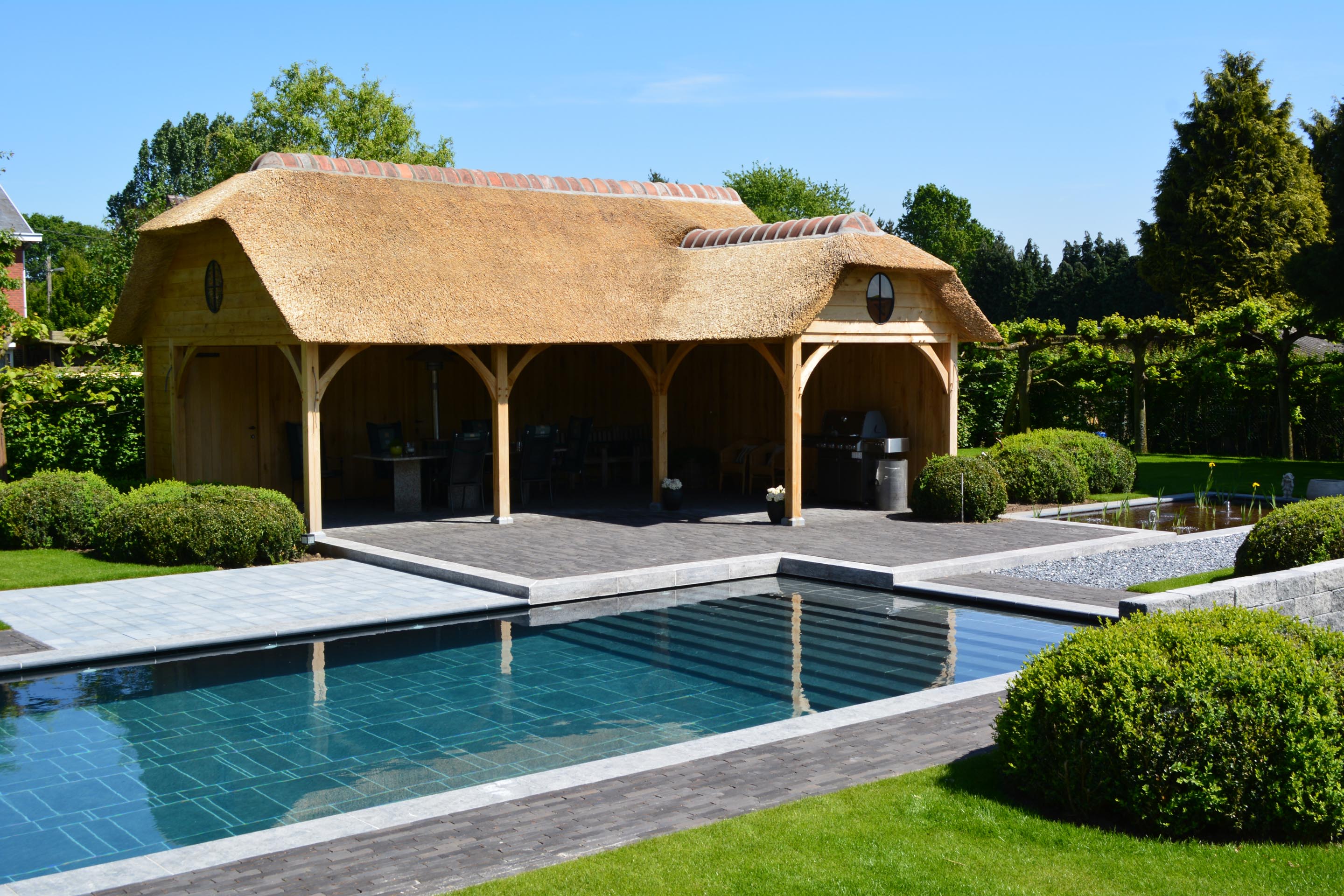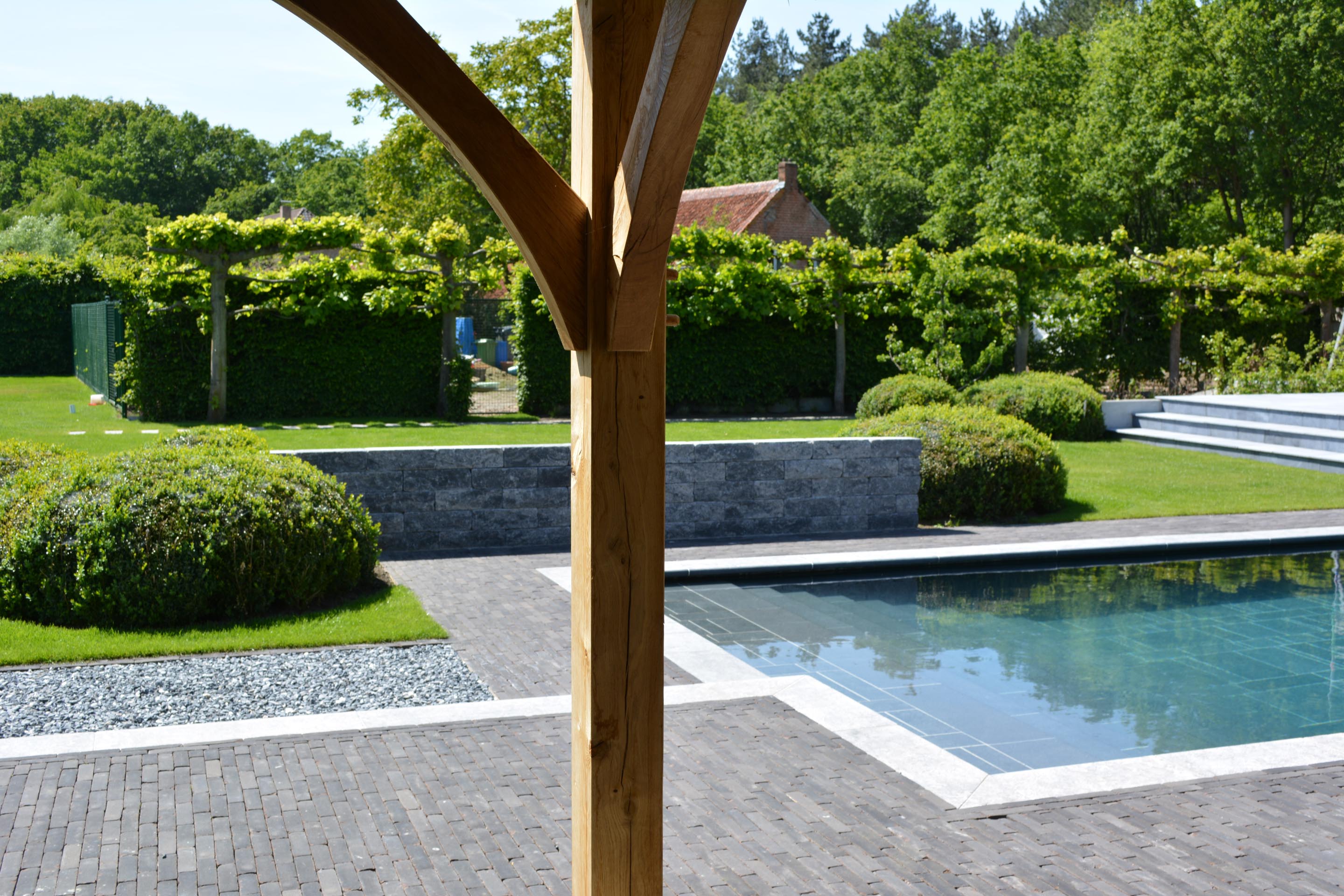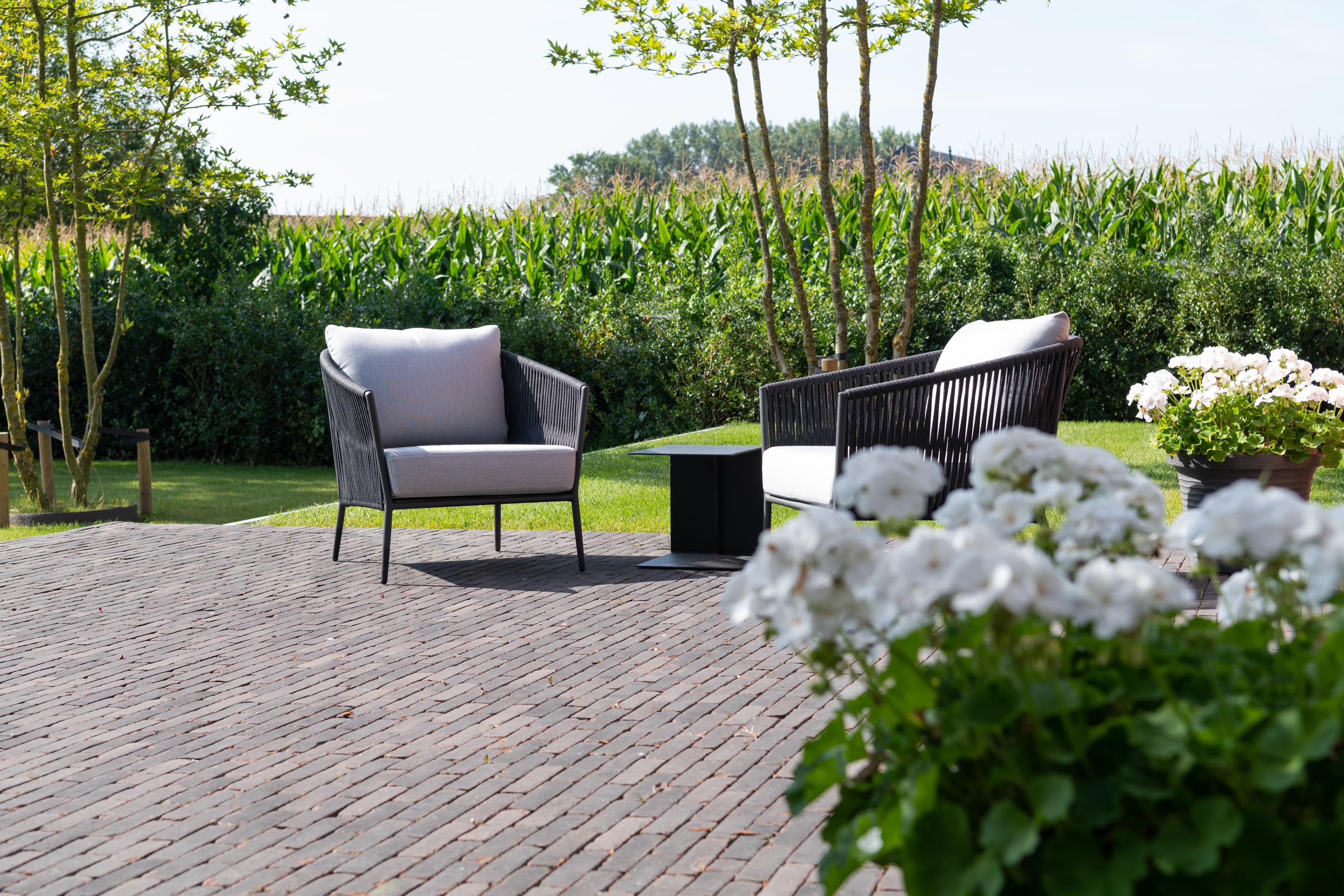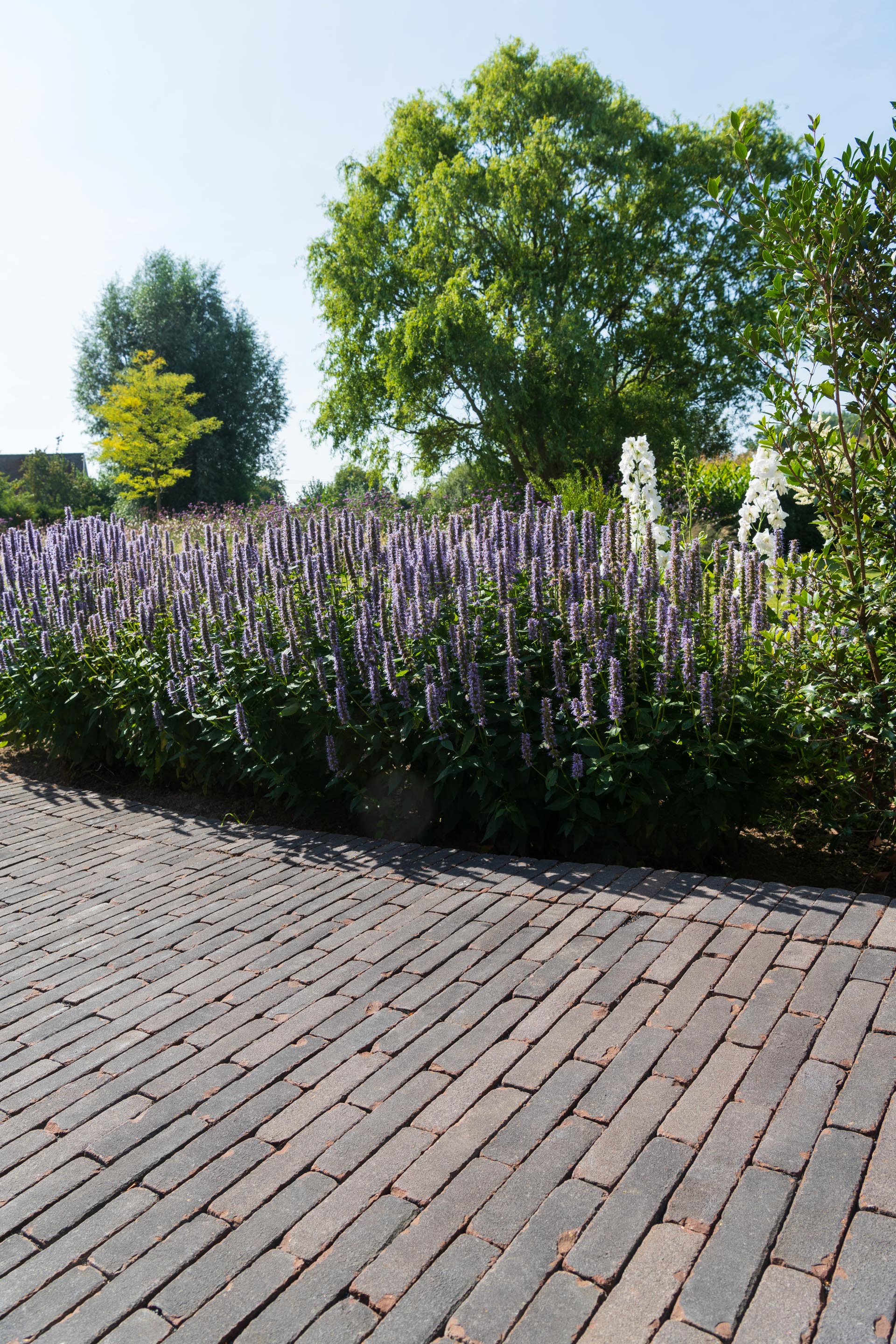 En utilisant des pavages et de la végétation structurante, l’entrepreneur de jardins Gert Kwanten a modelé un jardin apaisant entourant une imposante habitation dans le style manoir.