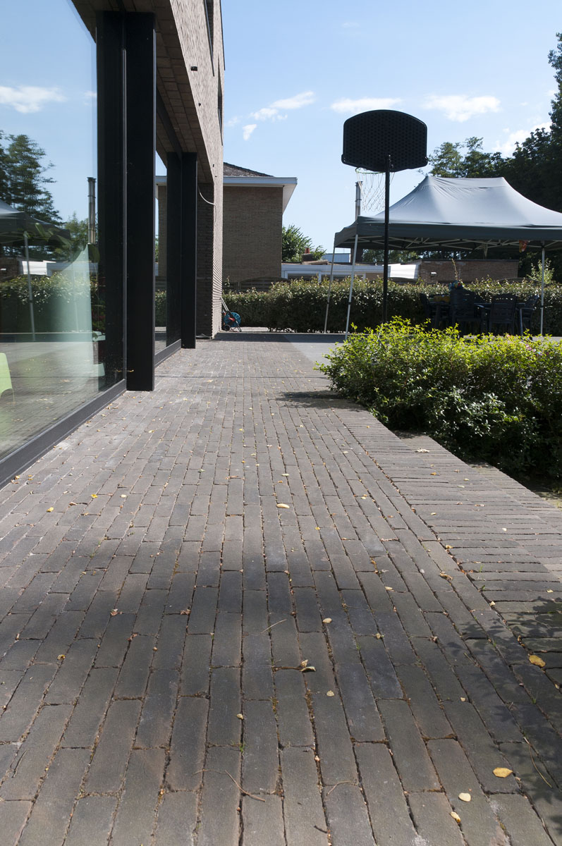 De par leur exceptionnelle dureté, les pavés en terre cuite peuvent également être nettoyés au jet d'eau sans risque de perte de couleur et de texture, si nécessaire en ajoutant des produits de nettoyage respectueux de l'environnement. Gardez une distance suffisante et évitez un jet ponctuel sur des pavés en terre cuite sablés. Les pavés en terre cuite sont résistants à la plupart des produits de nettoyage chimiques.