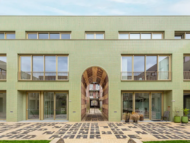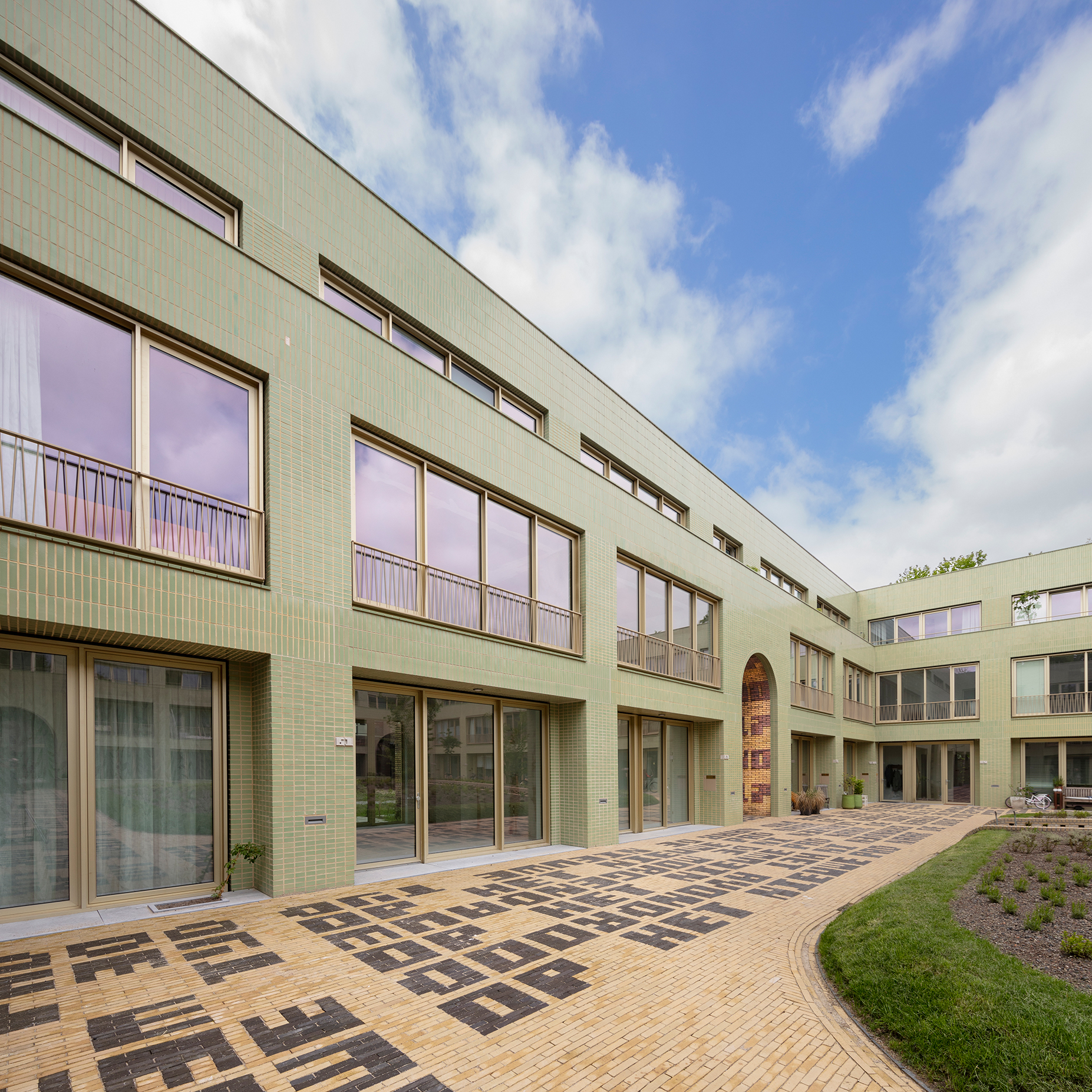 Le cœur du bâtiment est sa cour végétalisée, accessible par des portes qui se connectent aux routes informelles du quartier. Il y a des jardins communautaires dans lesquels les grands arbres existants ont été regroupés pour offrir une vue verte généreuse à la fois aux résidents du nouveau bâtiment et aux résidents des maisons adjacentes existantes. Le projet s'inscrit dans le cadre de la politique Rainproof de la ville d'Amsterdam. Des toitures vertes recueillent l'eau de pluie et l'espace public est aussi peu artificialisé que possible. En cas de stress thermique, l'abondance de verdure et les épaisses façades assureront le rafraîchissement. Les plantations sont destinées à fournir de la nourriture à la faune urbaine classique, comme les petits oiseaux chanteurs, les chauves-souris et les insectes. Des nichoirs pour les oiseaux, les martinets et les chauves-souris sont situés dans les avant-toits et les façades.