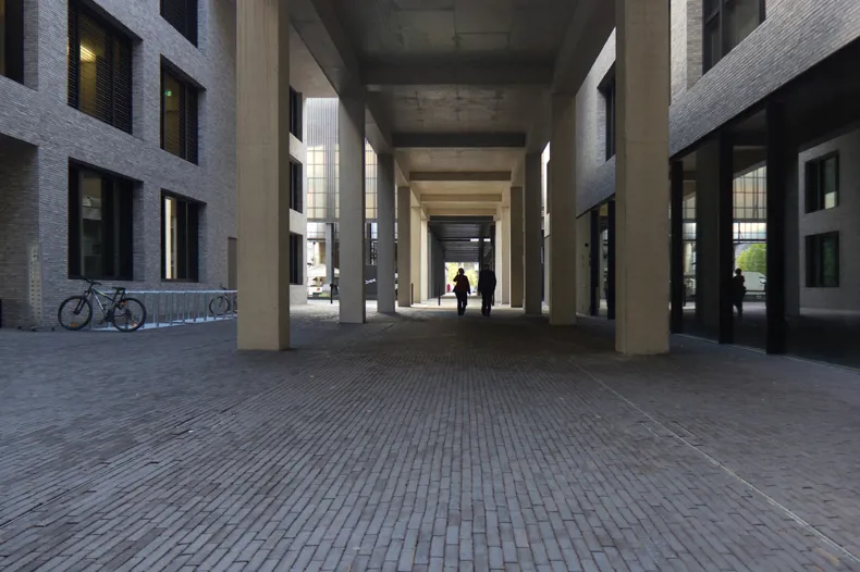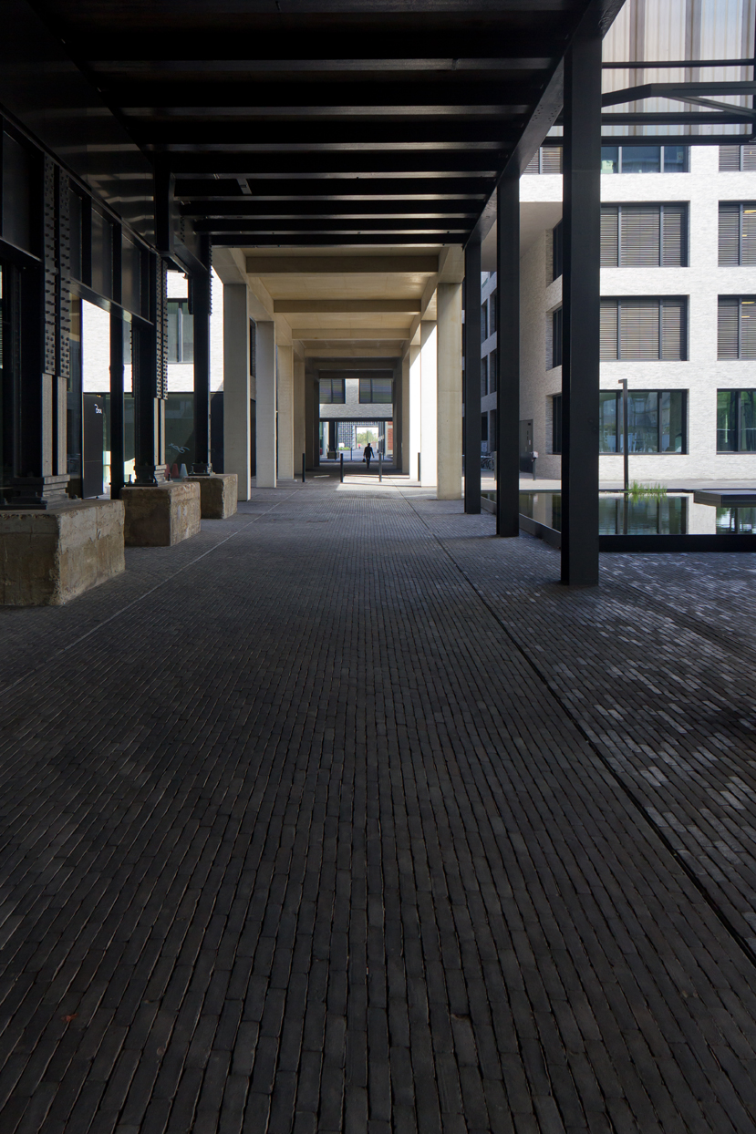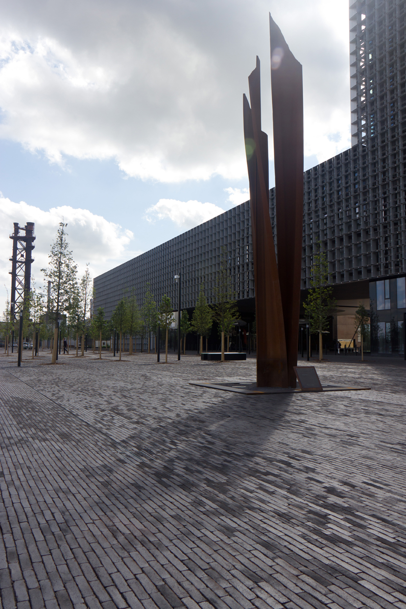 Michel Desvigne explique lui-même de quoi cet espace de 40 000 mètres carrés est fait : « une succession de cours, qui permet de passer d’une place à l’autre. Parfois, ces places se glissent sous des bâtiments, ce qui donne une perception exceptionnelle du mélange intérieur-extérieur. On passera vraiment volontiers d’un bâtiment à l’autre au travers de cet espace public. Ensuite, la première chose qu’on sentira, c’est ce grand socle unitaire. Socle de briques, très horizontal, profond, chaleureux.