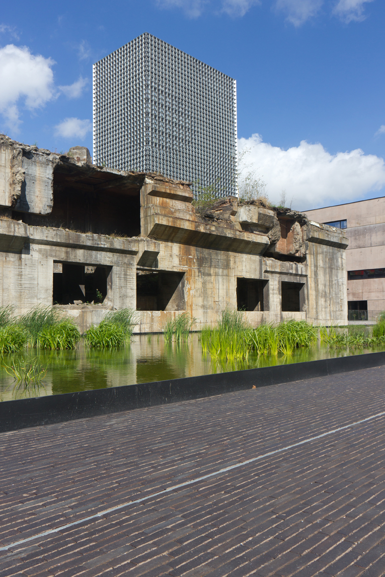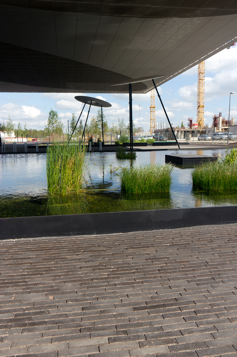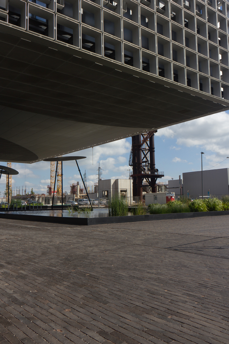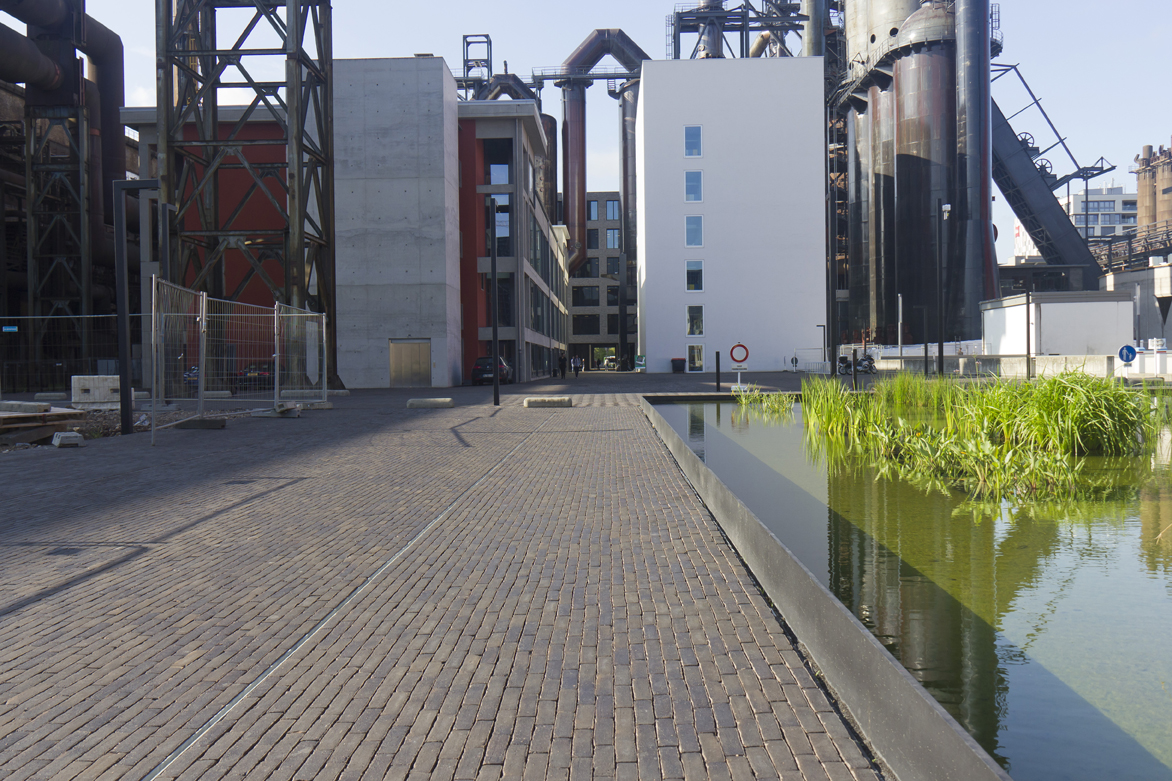 Situé au coeur de ce vaste ensemble, le projet auquel Vande Moortel a pu apporter sa pierre est celui de l’aménagement des espaces publics de la Terrasse des Hauts Fourneaux, sur laquelle s’érige la vingtaine de bâtiments constituant la Cité des Sciences. Le Fonds Belval, maître d’ouvrage de l’ensemble, en a confié la conception à l’architecte paysagiste français Michel Desvigne, associé pour l’occasion au bureau luxembourgeois AREAL.