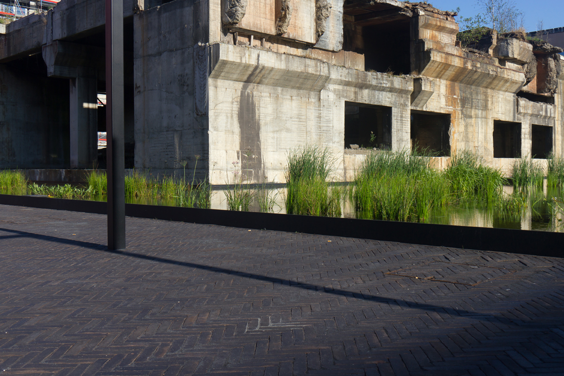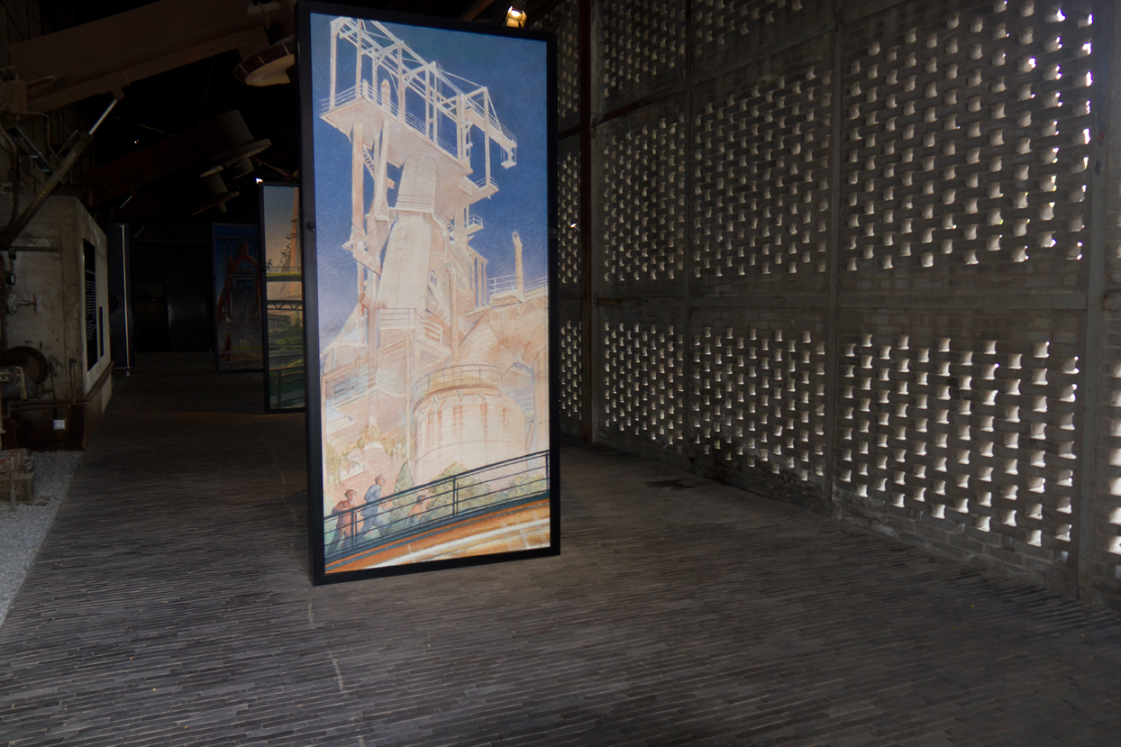 Le soir venu, l’ensemble est souligné par un éclairage (maître d’œuvre : Ingo Maurer), jouant sur les nuances d’une lumière modelée, de faible intensité mais toujours suffisante, qui renforce avec subtilité la profondeur des espaces et la dominance des vestiges industriels.
