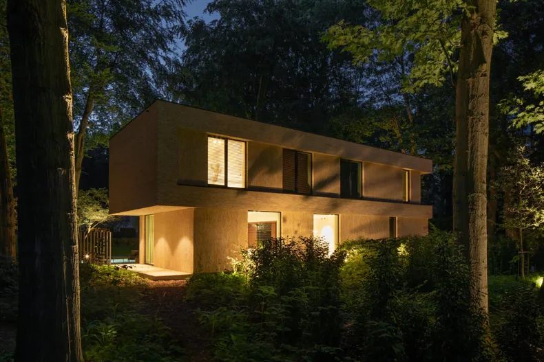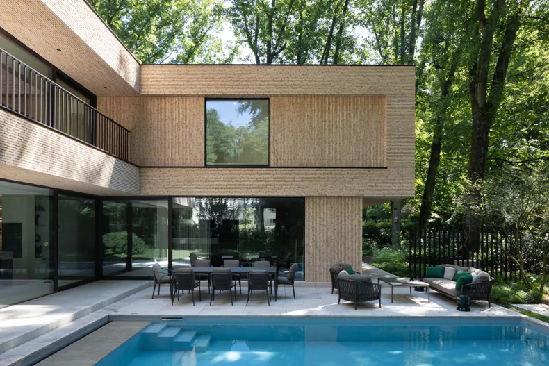 Vivre dans la nature nécessite une architecture unique. Dans les bois à proximité d'un village artistique de Flandre orientale, on découvre en plein été une fabuleuse villa sur un terrain de 2000 m². Cette perle spéciale est cachée dans la verdure, mais proche du village artistique animé et de toutes ses installations comme le club de golf. Avec des couleurs et des matériaux naturels, Baeyens & Beck Architects a réussi à incarner exactement les souhaits des propriétaires : amener l'extérieur à l'intérieur et l'intérieur à l'extérieur, pour se détendre complètement.