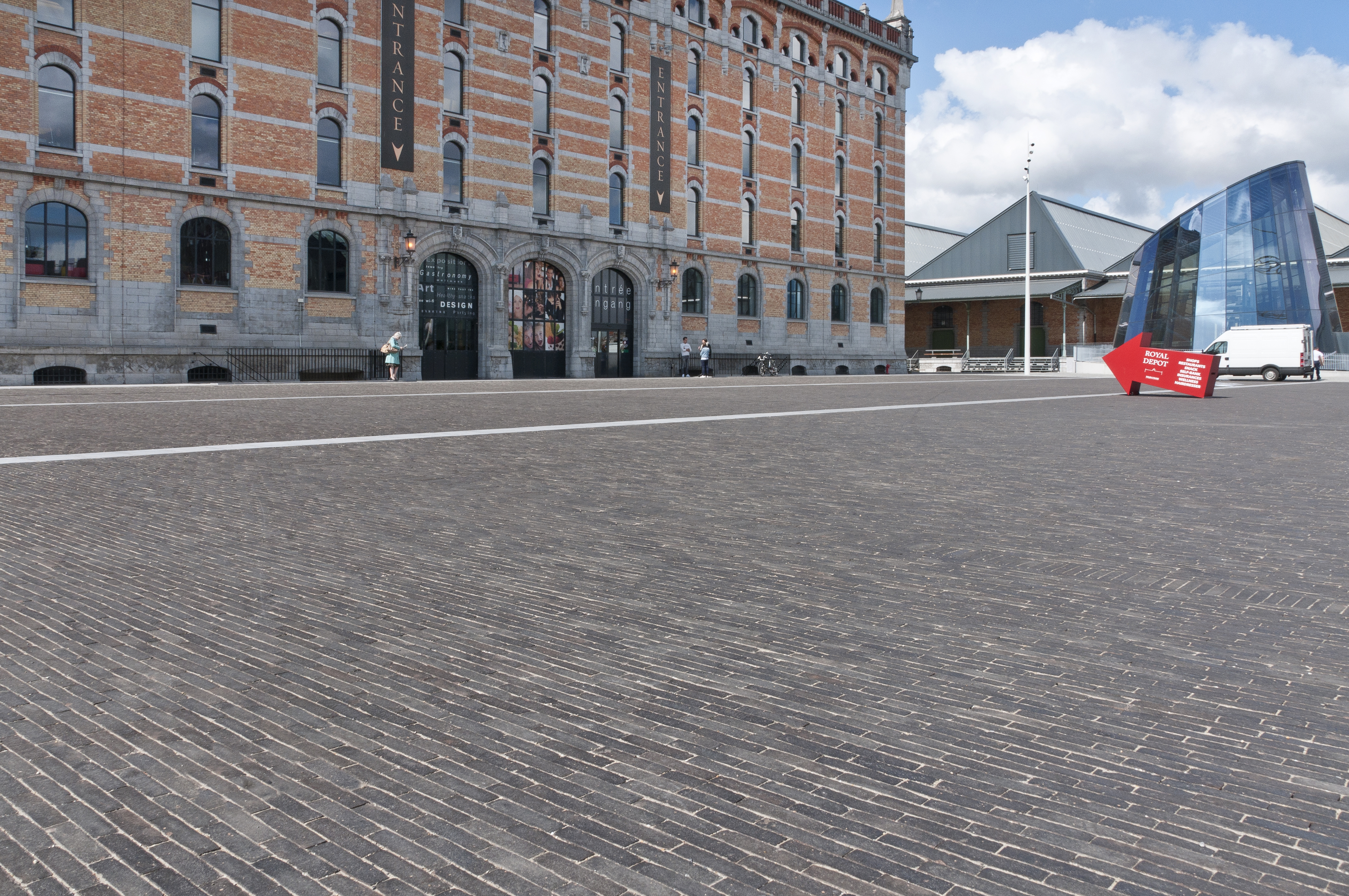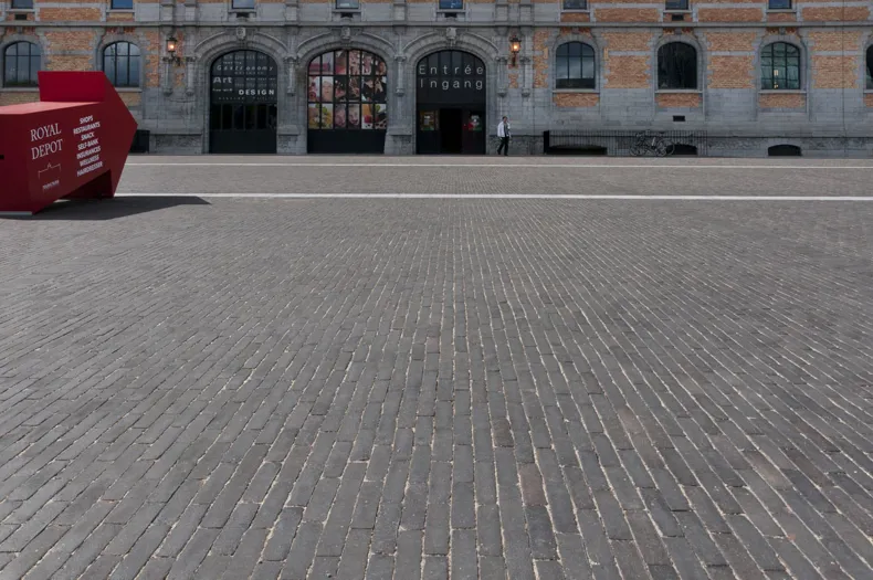 2015 a vu le réaménagement de l’esplanade piétonne devant l’Entrepôt Royal avec des pavés en terre cuite. Le parking se trouve sous l’esplanade et ne nuit donc pas à son aura.