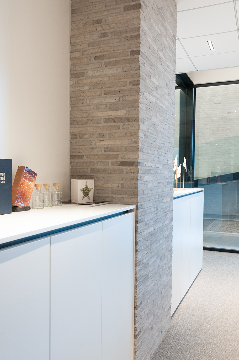 Chaque brique et pavé utilisés ont fait l’objet de recherches. Le bâtiment fait en effet aussi office de centre de connaissances, et ce tant pour les utilisateurs que pour les visiteurs qui souhaitent découvrir plus en profondeur nos produits et leurs applications. Un parcours au sein du bâtiment permet de les passer en revue sous toutes les facettes, tout comme l’histoire de notre briqueterie.