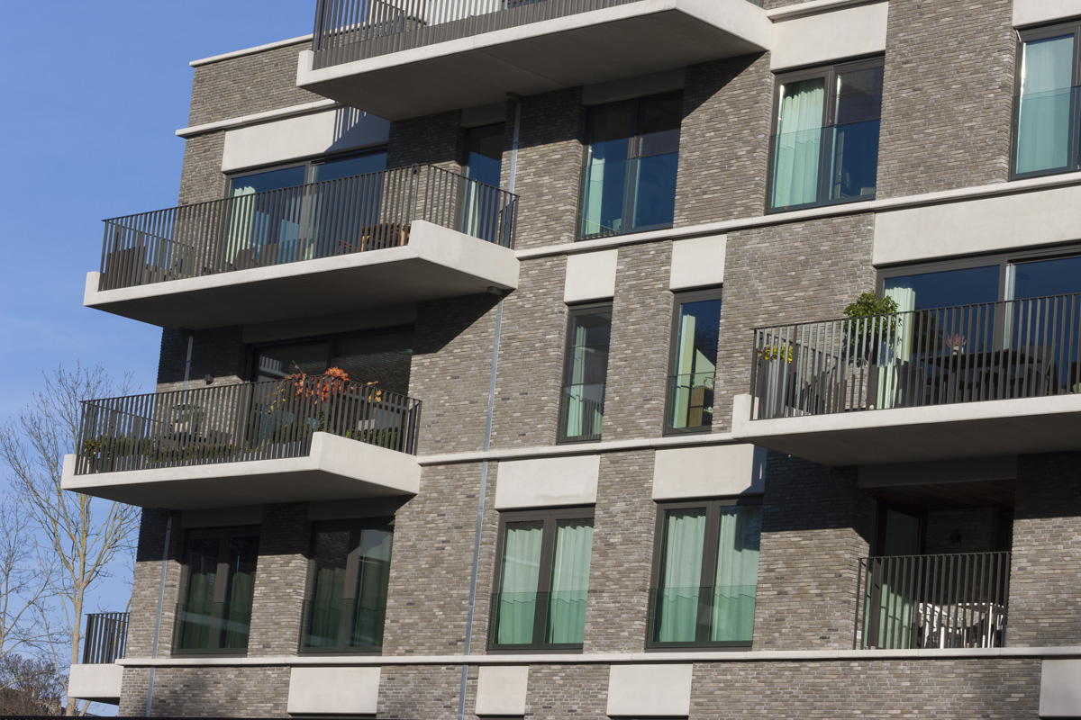 Les appartements côté parc ont quant à eux une autre allure avec leurs terrasses en porte-à-faux et leurs grandes baies vitrées. Tournées vers les fortifications, leurs façades se parent des teintes gris-vert et gris-brun de la gamme Miniature.