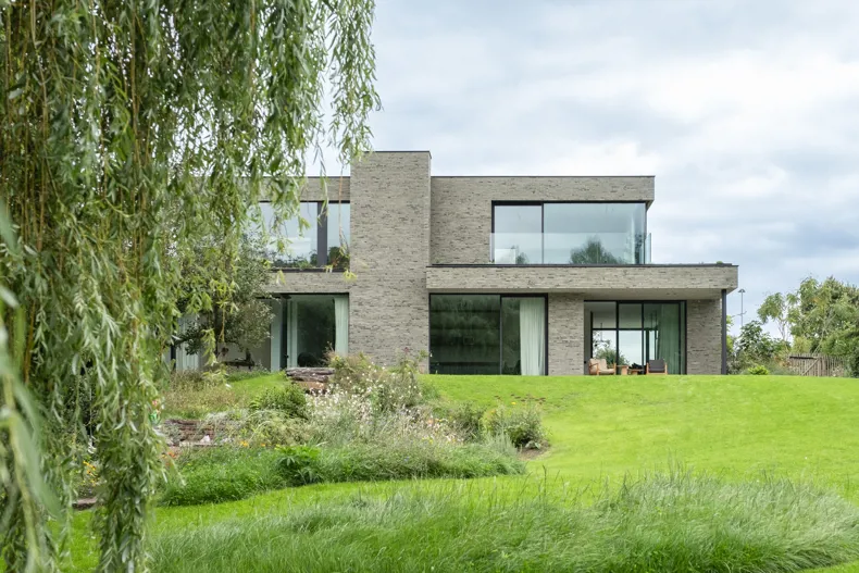 Pascal Bilquin et Guy Speltdooren se connaissent depuis des années et travaillent régulièrement ensemble sur des projets. Bilquin en tant qu'architecte, Speltdooren en tant que directeur de l'entreprise générale Bouw-iD. À Deinze, le tandem a récemment construit une maison familiale atypique sur les rives de la Lys. Le résultat est une masterclass en matière de maîtrise et de précision, inspirée par la nature, où chaque espace offre une expérience différente. « C'est une maison aux dimensions différentes, où l'on voit tantôt beaucoup, tantôt peu », explique-t-il.